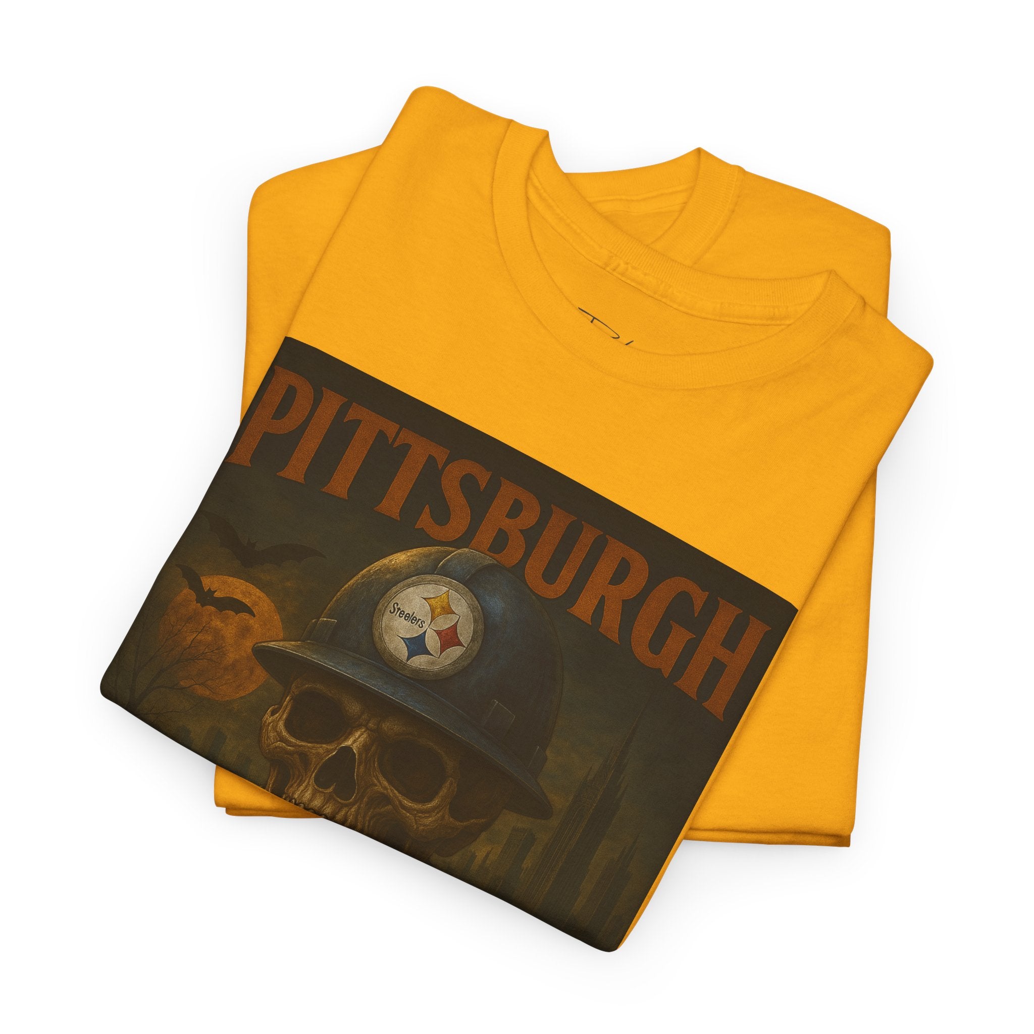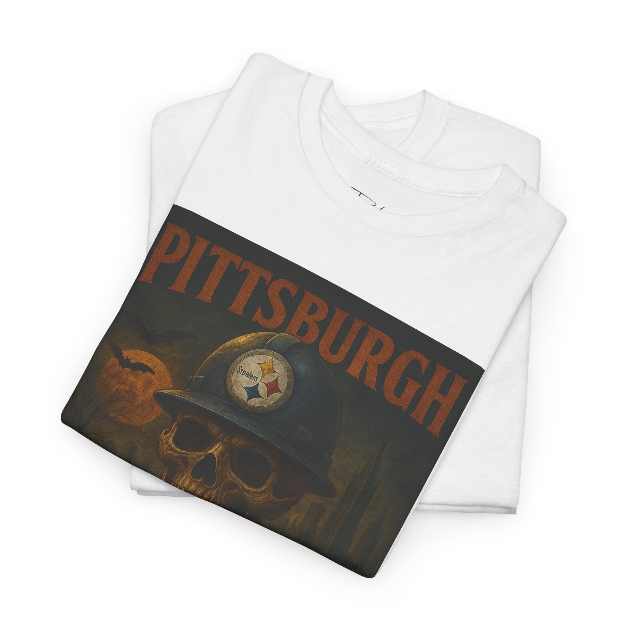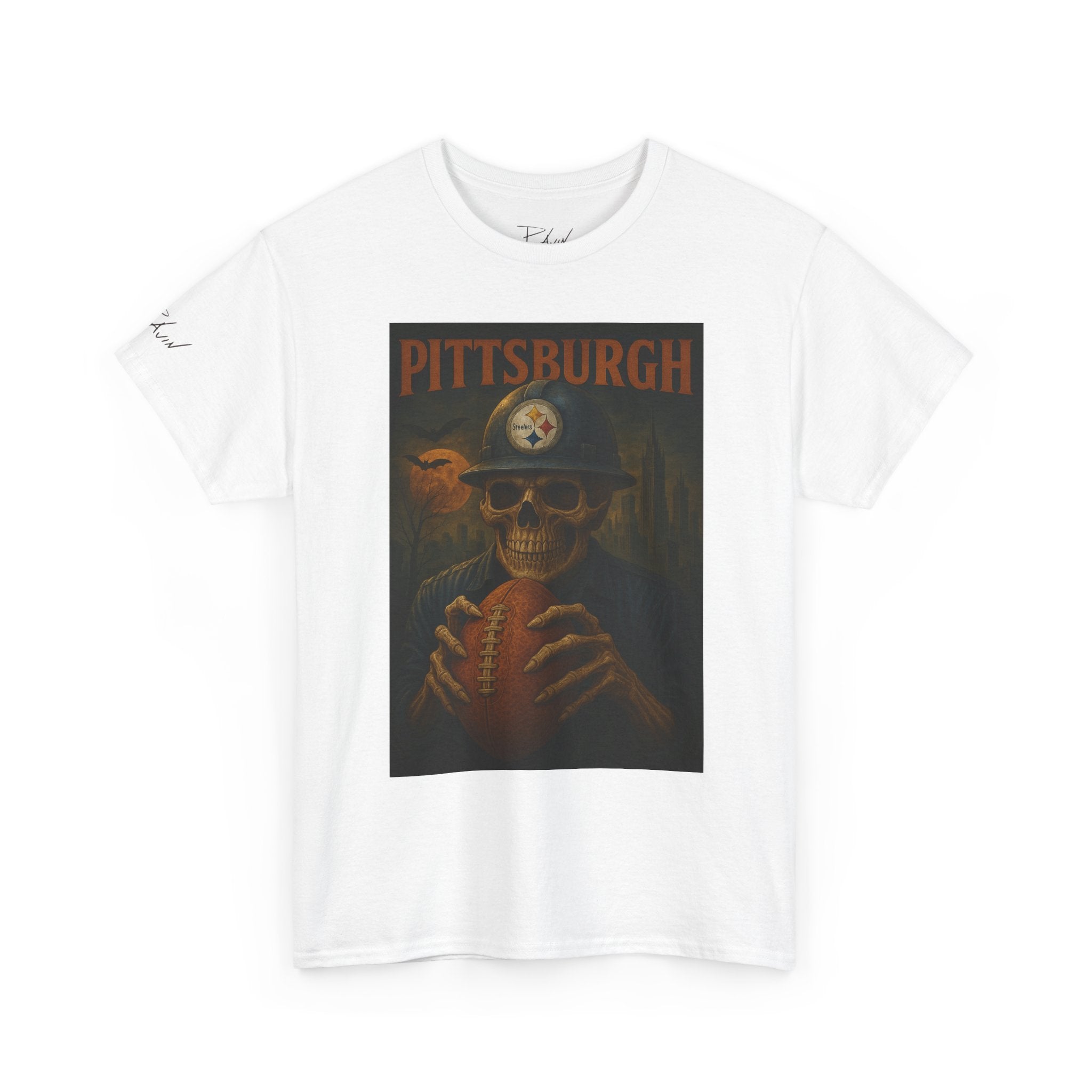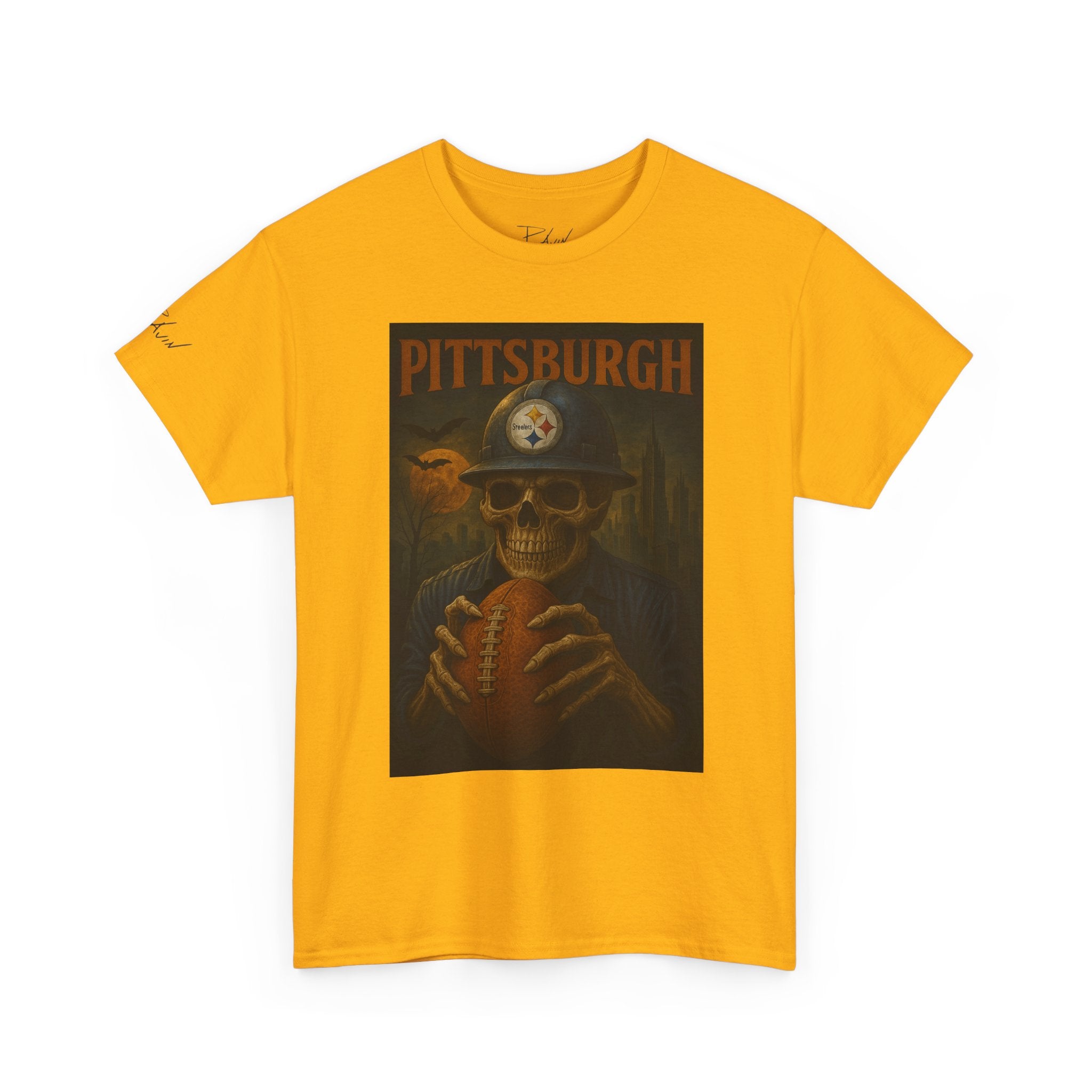 Pittsburgh's gone dark with this custom design perfect for halloween! This grim reaper's ready for kickoff with his hard hat, cold bones and a death like grip on the ball.