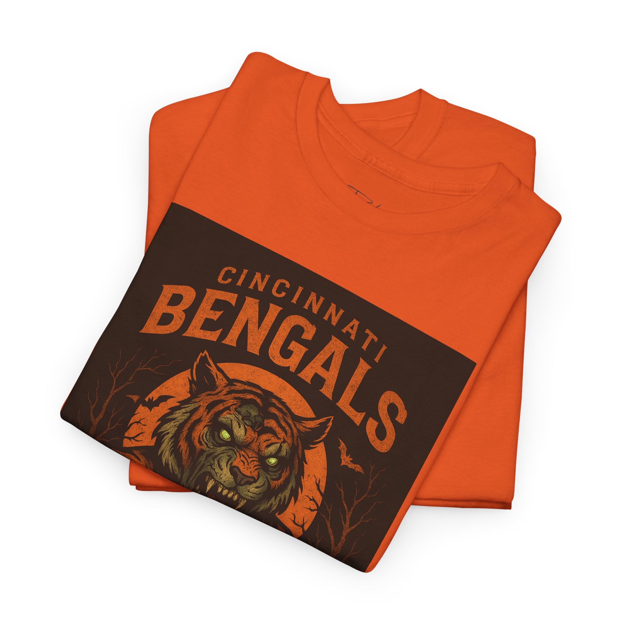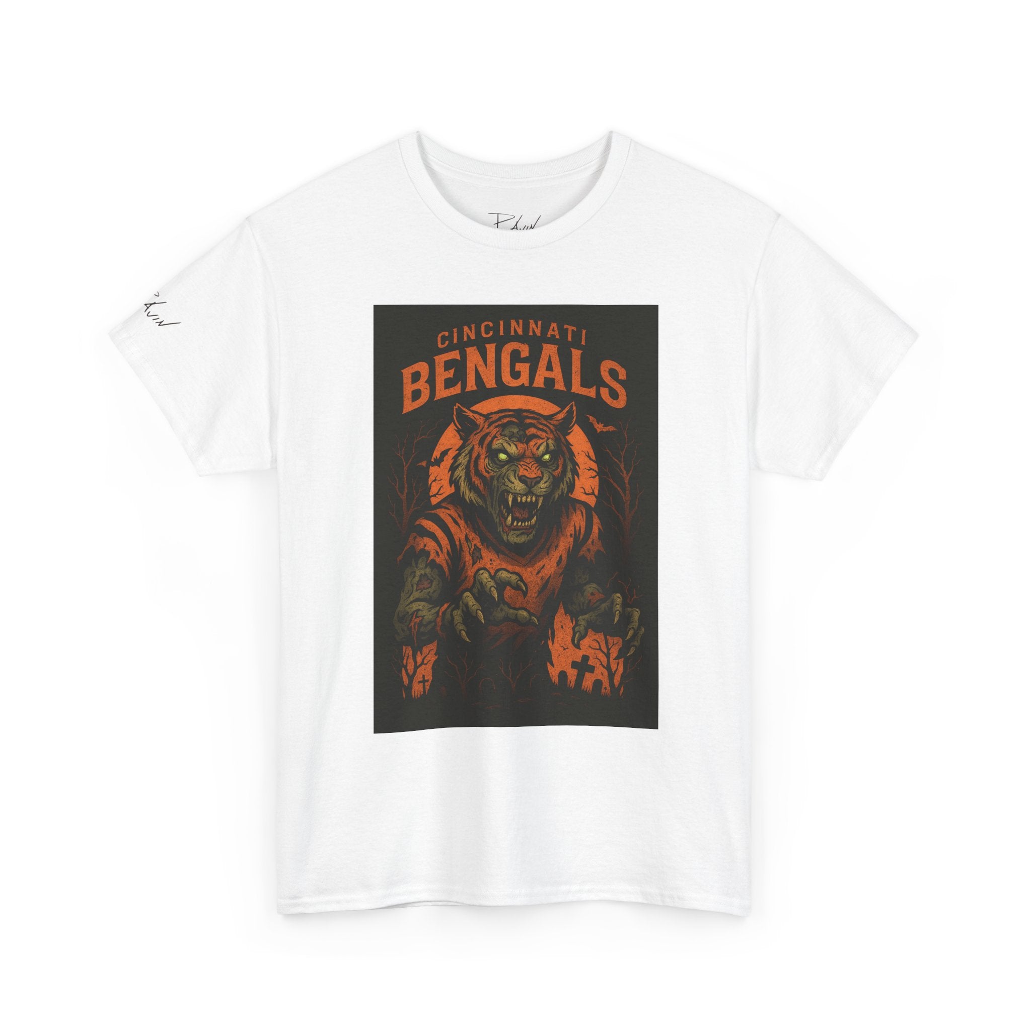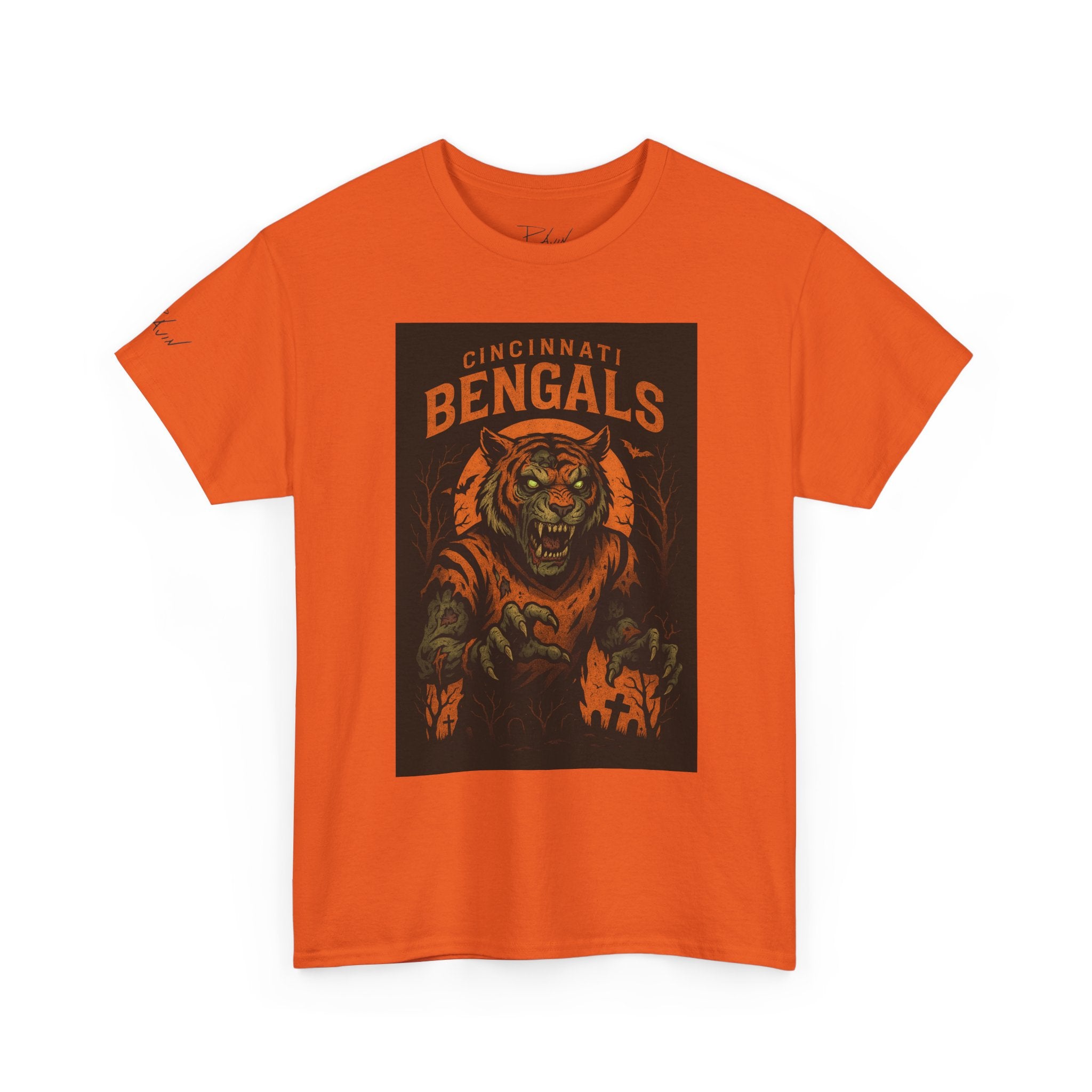 This custom design features a zombie bengal tearing through the graveyard under a blood-orange moon.